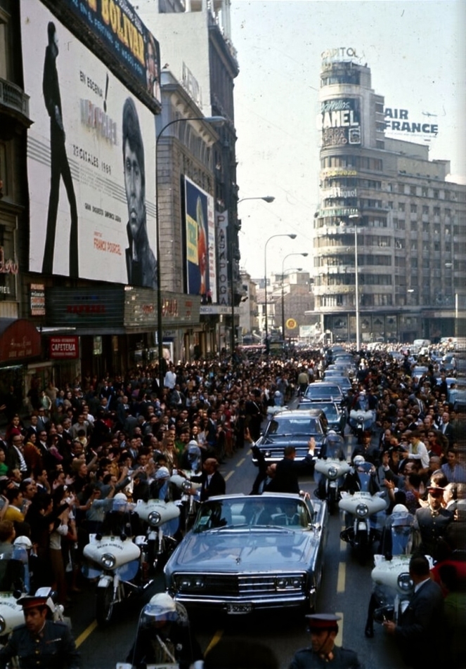 Apenas mes y medio después de ese primer concierto, el Palacio fue escenario del estreno de gala de su primera película como protagonista. Fue un viernes también, específicamente el 25 de noviembre de 1966. Esa noche, a las diez y media, llegó a los cines Cuando tú no estás, dirigida por Mario Camus y con un elenco que incluía a María José Alfonso, Ricardo Lucia, Margaret Peters y José Martín. La Gran Vía quedó desbordada por miles de admiradores que querían ver al artista pasar; las entradas se habían agotado rápidamente y el estreno se convirtió en un evento social de gran impacto. España rara vez había presenciado una respuesta popular tan abrumadora.