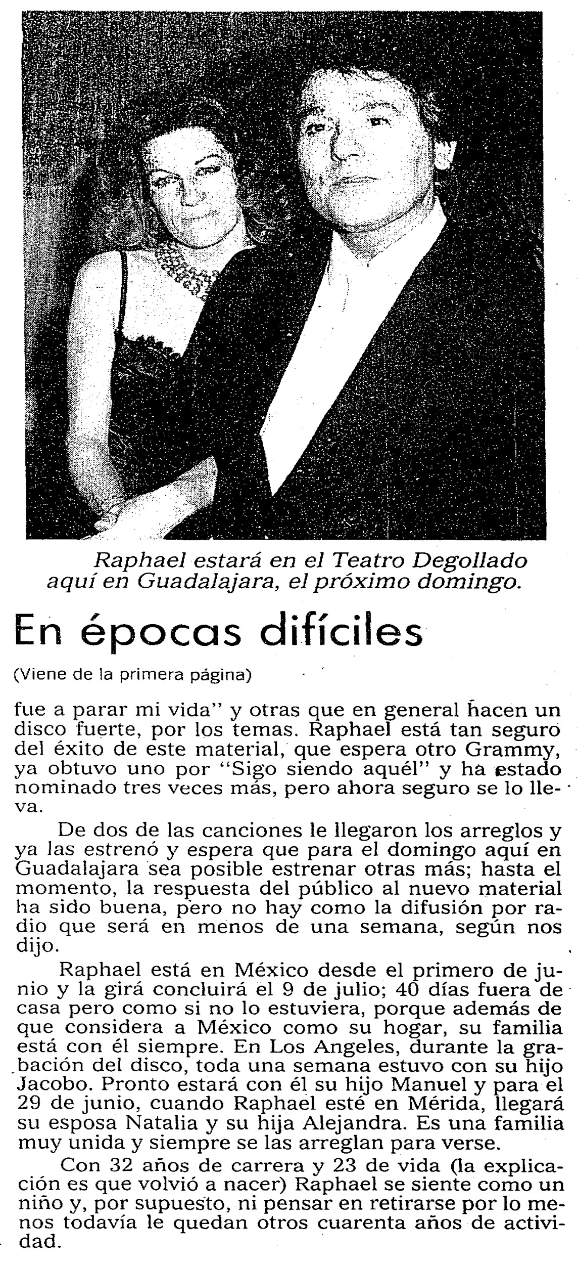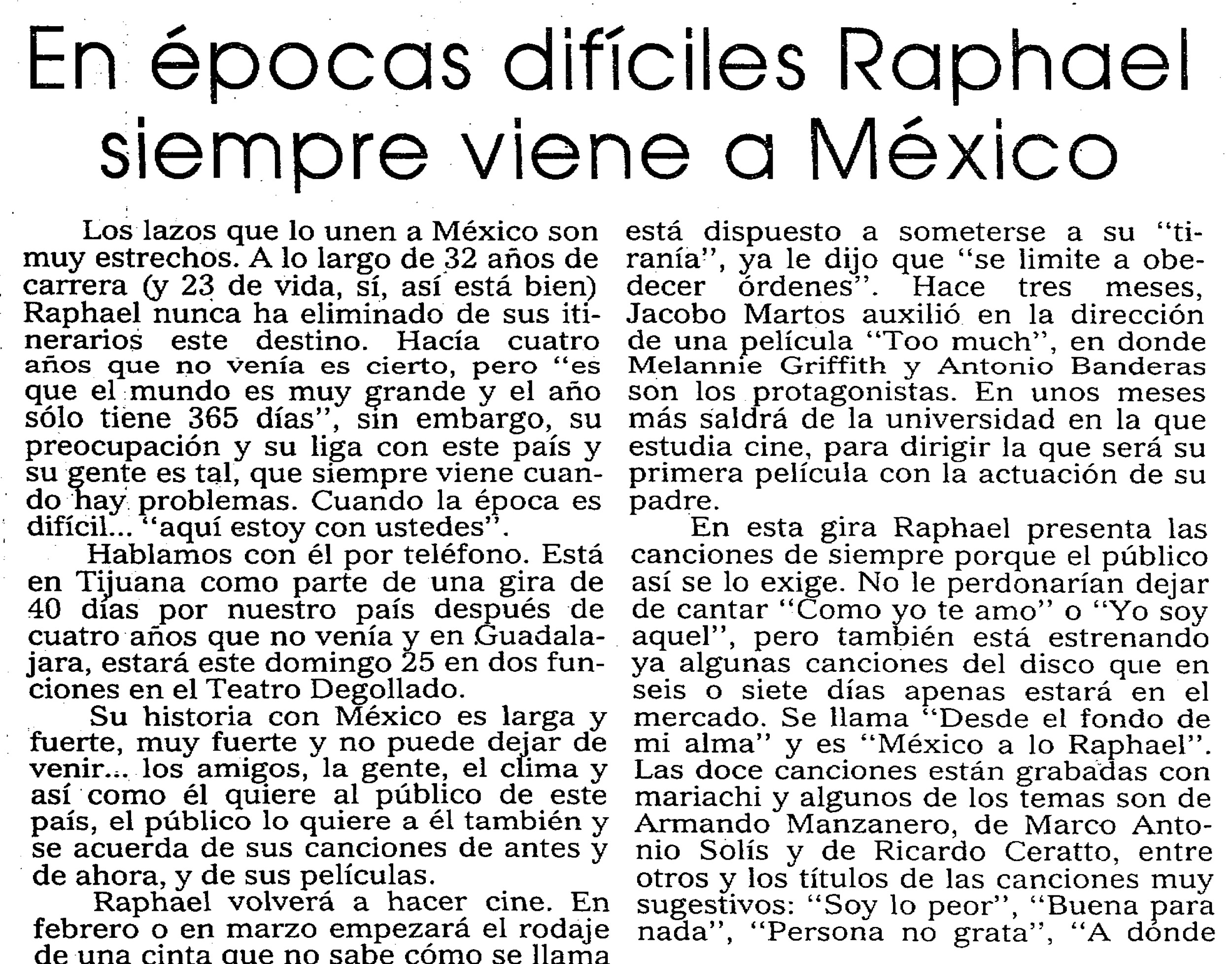 En épocas difíciles Raphael siempre viene a México