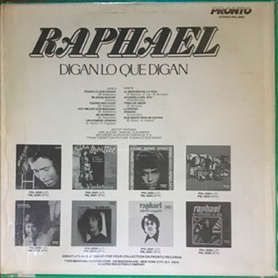 Digan lo que digan es la banda sonora de la película del mismo nombre, la tercera película interpretada por Raphael. El álbum contiene magníficas canciones escritas por Manuel Alejandro.