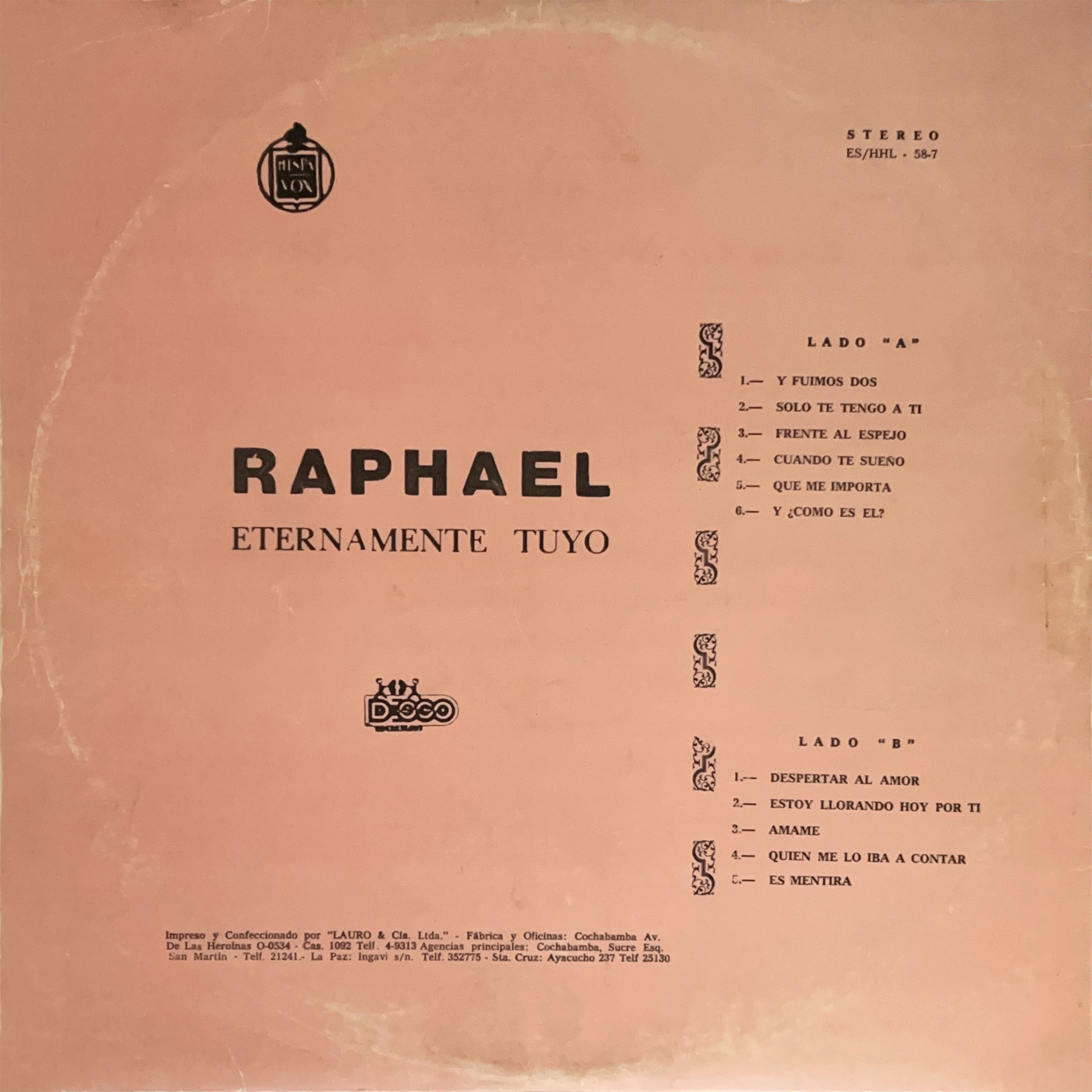 Hispavox (ES/HHL – 58-7), Bolivia